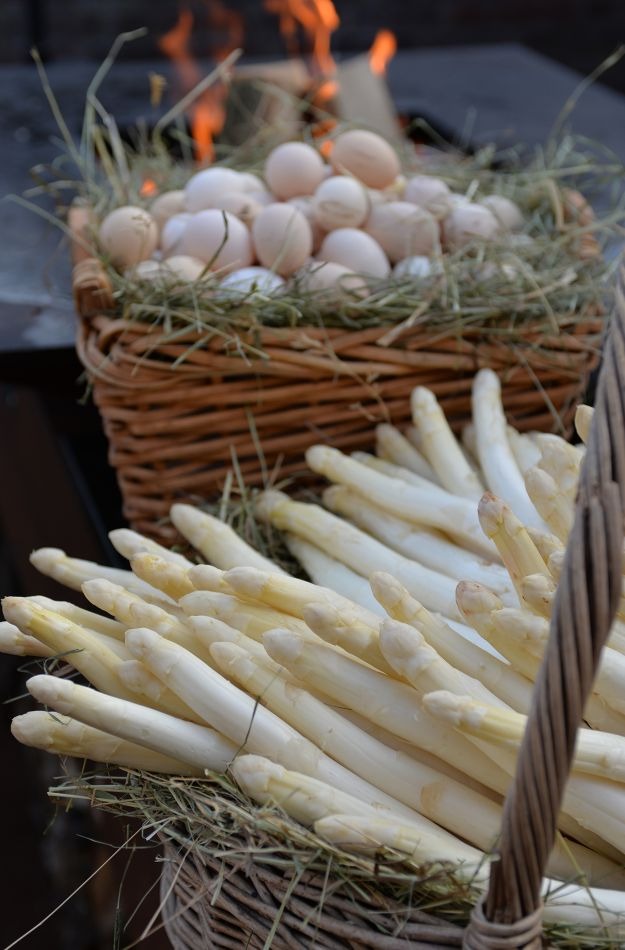 Asperges wit, groen, gekookt, van de grill, salade, . . .